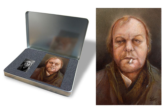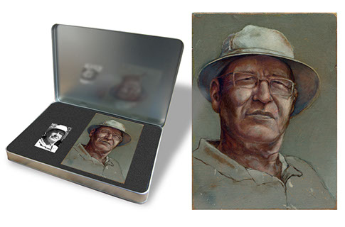 Dit fraaie blikje bevat een, in nostalgische tinten, geschilderd portret naar een oude 'foto'.